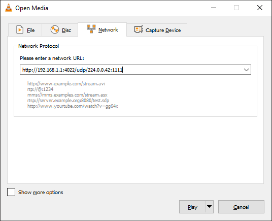 . In this case, you have to send the following HTTP request to receive the video content:http://192.168.1.1:4022/udp/224.0.0.41:1111